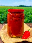 Ertat Gıda Köz Kırmızı Biber doğal, geleneksel yöntemlerle közlenmiş, katkısız. Kabukları özenle soyulmuş, dumanlı ve tatlı-ekşi dengeli lezzetiyle mezeler ve yemekler için ideal.